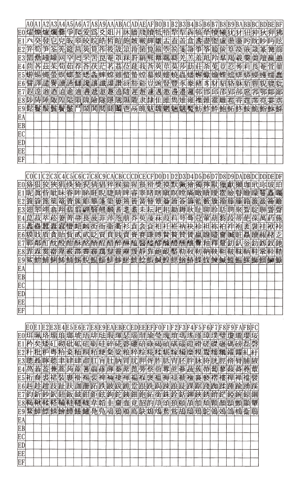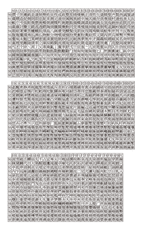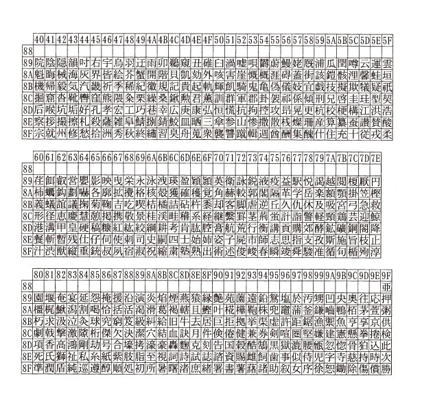 漢字コード表(JIS第二水準 JIS X0208-1990)