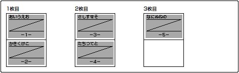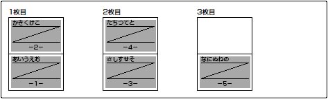 たとえば、5ページ分の印字データは、次のように印字されます。