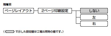 A4サイズまたはB5サイズで作成された印字データを、A3サイズまたはB4サイズの用紙に見開きで2ページ分ずつ並べて印字するかどうかを設定します。