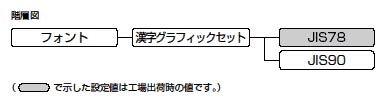 グラフィックセットとは、コンピュータから送られてくるコードに対して、どの文字を割り当てるかを取り決めたもので、それを表にしたものがコード表です。漢字コードは、1978年版の旧JIS(JIS78)と、1990年版の新JIS(JIS90)に準拠しています。新JISでは、新しい特殊記号39文字と罫線32文字が追加されているほか、約300種類の漢字のフォントが変更されています。