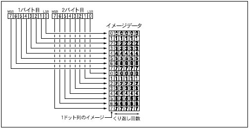 16進数でイメージデータ1ドット列(16ビット)を指定します。