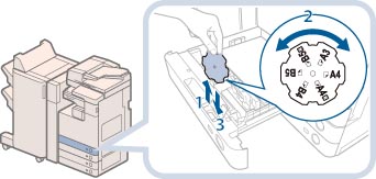 カセットにセットされている用紙のサイズを変更するときは、次の手順に従ってカセットガイドを調節してください。