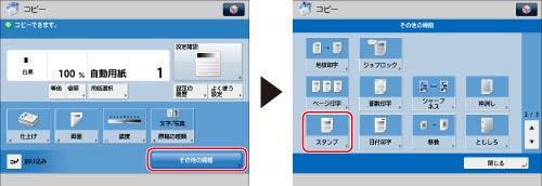 [ページ印字/スタンプの文字列登録]に登録されている文字列から選ぶこともできます。(→ページ印字/スタンプの文字列を登録/編集/削除する)