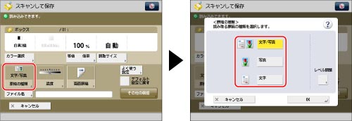 ボックスを選択して[文字/写真]のレベルを調節する場合、増設メモリType A(512MB)を装着し、本製品のメモリーを拡張する必要があります。