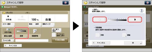 原稿の濃度に合わせて、読み込む濃度を調節できます。