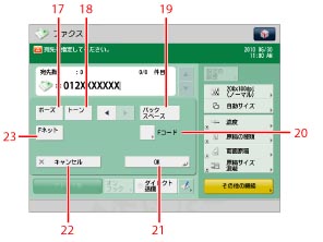 G4 FAXボード装着時に表示されます。ISDNサブアドレスを指定します。[ISDNサブアドレス]を押すと「/」と表示されます。