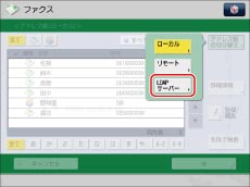 [アドレス帳の切り替え]は、リモートアドレス帳とLDAPサーバーが登録されているときに表示されます。LDAPサーバーのみが登録されているときは[LDAPサーバーへ]が表示されます。