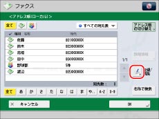 宛先の検索をするには、ここで入力したフリガナをもとに検索を行います。検索には、フリガナの1文字目をもとに宛先を限定して並べ替えをする方法や、半角24文字までのカタカナ、記号を使用して宛先を絞り込む方法があります。