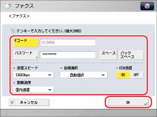 [Fコード]、[パスワード]を入力→各項目を設定