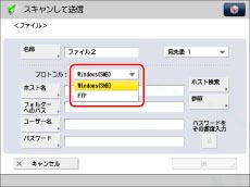 使用できるプロトコルについては「キーボード画面を使ってファイルサーバーを指定する」を参照してください。