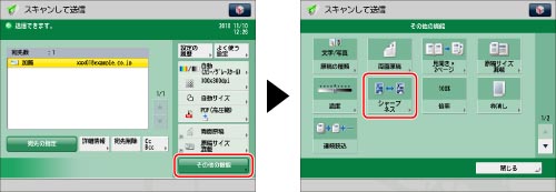 宛先を指定→[その他の機能]→[シャープネス]を押す