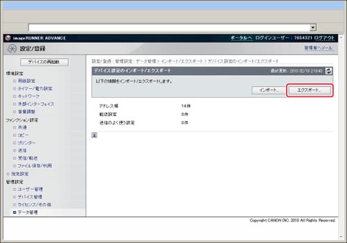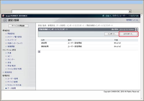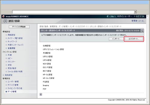 [専用フォーマット]の場合は、保存したファイルを他のキヤノン製複合機にインポートできます。