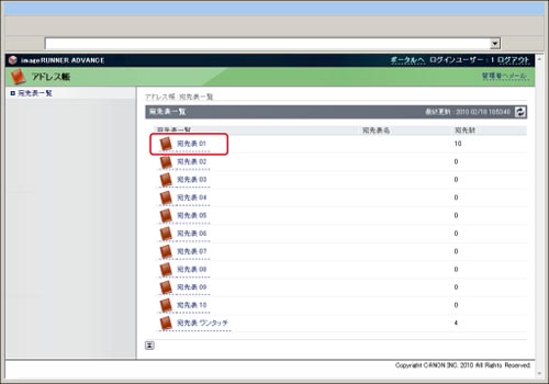 (宛先表一覧)をクリックしても、宛先表に登録されている宛先の一覧を表示できます。|