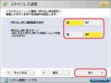 登録したボタンを呼び出したときに設定内容の確認画面を表示させる場合は、[ON]を押します。設定内容の確認画面については、