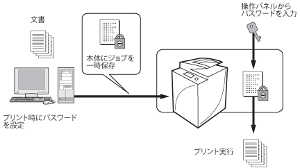 コンピューターから本製品に、暗証番号を付けた文書(プリントデータ)を送ることができます。