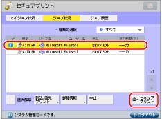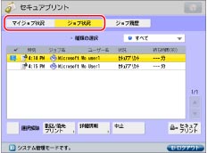 SSO-Hの管理者としてログインしたときはすべてのユーザーのジョブが表示され、詳細情報の表示/プリントの中止が可能です。ただし、セキュア文書と暗号化セキュア文書は、データを送ったユーザー以外がプリントすることはできません。