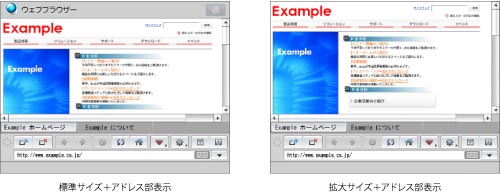 使いかたに合わせてウェブブラウザーの画面表示を変更できます。画面表示は、画面サイズとアドレス部の表示/非表示の組み合わせによって、4種類の表示方法があります。