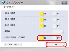 「OFF」に設定した場合は、HTTPS/HTTP混在ページ内のHTTPSで指定されたコンテンツのみ表示されます。