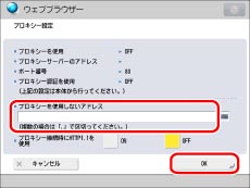 セキュリティー上、プロキシーを使用する必要のないアドレスを指定できます。本体側で設定したプロキシーを確認できます。