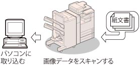 コンピューターに画像を取り込むことができます。本製品の原稿台を、最大A3サイズ600dpiのスキャナーとして利用できます。