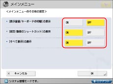 を押すと、次の画面が表示されます。表示された画面から項目を選択してメインメニュー画面表示の設定をします。