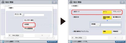 署名アルゴリズムの「RSA-MD5」、「RSA-MD2」を使用している鍵ペアを選択した場合にIPSec通信をFIPS(連邦情報処理規格:Federal Information Processing Standards)140-2に準拠させたときは、この鍵ペアを設定したポリシーは無効(OFF)になります。(→FIPS 140-2に準拠した暗号方式を使用する)