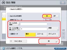 Macintoshのプリンター画面に表示されるプリンターの名称を設定するには、[サービスの名称]を押します。プリンターの名称を入力したあと、[OK]を押してください。