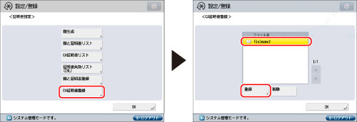CA証明書の確認/削除