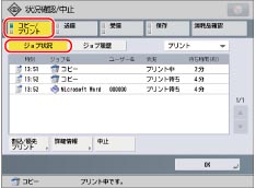 実行中のジョブに割り込んで、または優先的に選択したジョブをプリントします。[割込プリント]は、実行中のジョブを中断してプリントします。[優先プリント]は、実行中のジョブの次にプリントします。