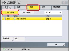 選択したジョブの詳細情報を表示します。表示された詳細情報を確認して、[OK]を押すと受信画面に戻ります。