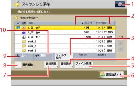 フォルダーの操作、詳細情報の確認、およびファイルの編集や削除方法については、「保存ファイルの利用」を参照してください。