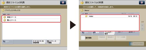フォルダーにファイルが2つ以上保存されているときには、[名称]、[日付/時刻]を押して、保存されているファイルを並べ替えて表示できます。