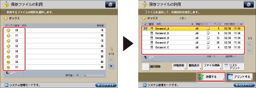ファイルを送信するときはプリントしたり、他のボックスに保管したりすることはできません。