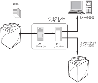 (設定/登録)→[ファンクション設定]→[送信]→[Eメール/Iファクス設定]→[サーバーの経由を使用]