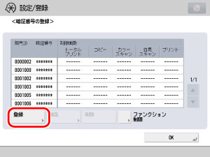 [ON]→[暗証番号の登録]→[登録]を押します。