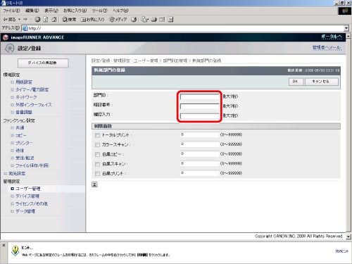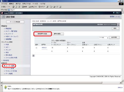 リモートUIからも部門IDを登録できます。