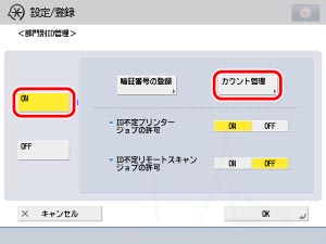 [ON]→[カウント管理]を押します。