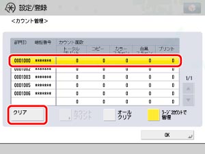 部門ごとにカウントを消去する場合は、消去する部門を選択したあと、[クリア]を押します。
