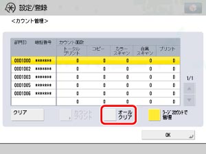 単月の実績を管理する場合、指定した日に[オールクリア]を押してカウントをリセットすると便利です。[オールクリア]を押す直前に実績を控えておきます。カウントの停止はできません。