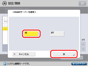 以下の手順で[WebDAVサーバーを使用]を[ON]に設定します。