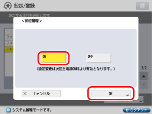 (設定/登録)→[ファンクション設定]→[ファイル保存/利用]→[アドバンスドボックス設定]→[認証管理]