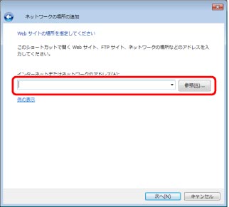 Windows Vista/7の場合は、[コンピュータ](Windows 7は[コンピューター])をクリックしたあと、表示されたフォルダー上の何もない場所で右クリック→[ネットワークの場所を追加する]→[次へ]→[カスタムのネットワークの場所を選択]で、「インターネットまたはネットワークのアドレス」に以下の公開されているパスを入力します。(大文字と小文字の区別をします。)