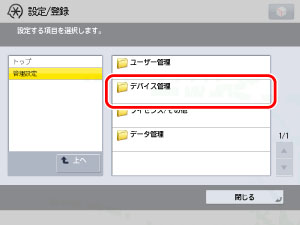 (設定/登録)→[管理設定]→[デバイス管理]を押します。