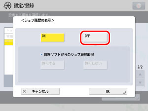[ジョブ履歴の表示]を押したあと、[OFF]を押します。