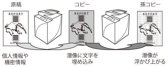 コピー:製本、イメージリピート、シャープネス、イメージ合成、地紋印字、ページ印字/部数印字、スタンプ/日付印字、鏡像