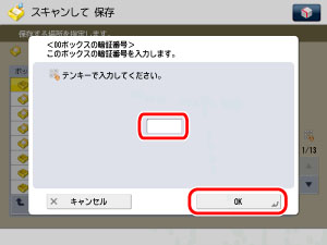ボックスの暗証番号を入力したあと、[OK]をクリックします。