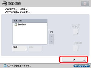 (設定/登録)→[ファンクション設定]→[共通]→[印刷動作]→[合成のフォーム登録]を押します。