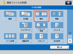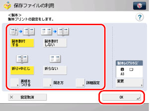 中とじのホチキスの位置が用紙の中央ではない場合は[中とじ位置変更]を押します。