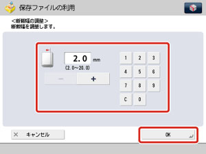 必要に応じて[断裁幅の調整]を押して、断裁幅を調整したあと、[OK]を押します。