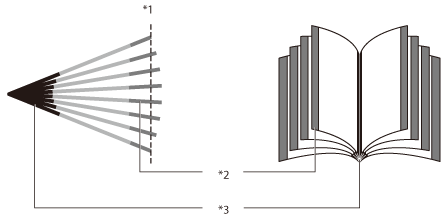 *3 とじ側の余白の幅が、外側のページほど広く、内側のページほど狭くなるように、最も外側と最も内側の用紙の間のずれ幅から画像の位置を調整する